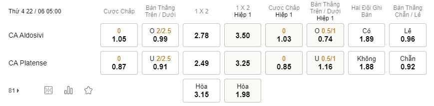 Soi kèo châu Á Aldosivi vs Platense: 1.05*0*0.87