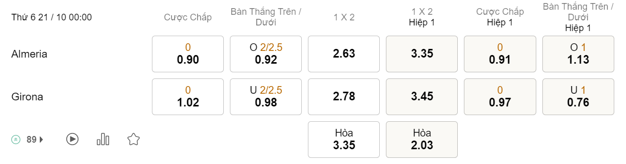 Soi kèo tài xỉu Almeria vs Girona: 0.92*2/2.5*0.98