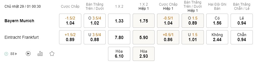 Soi kèo hiệp 1 Bayern vs Frankfurt: 1.04*0.5/1*0.86