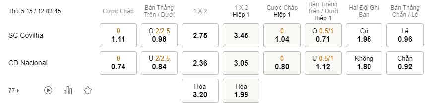 Soi kèo châu Á Covilha vs Nacional: 1.11*0*0.74