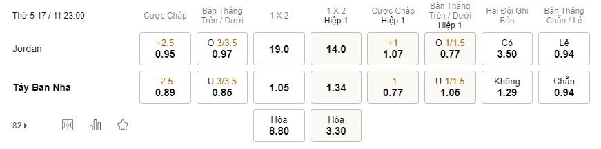 Soi kèo châu Á Jordan vs Tây Ban Nha: 0.95*2.5*0.89