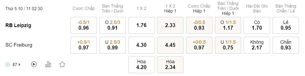 Tỉ lệ kèo Leipzig vs Freiburg