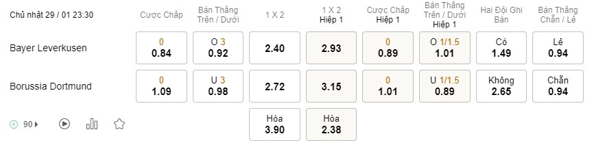Soi kèo hiệp 1 Leverkusen vs Dortmund: 0.89*0*1.01