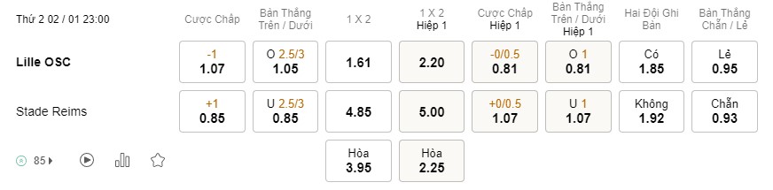 Soi kèo châu Á Lille vs Reims: 1.07*1*0.85