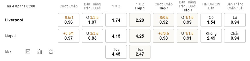 Soi kèo châu Á Liverpool vs Napoli: 0.96*0.5/1*0.97