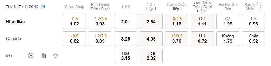 Soi kèo hiệp 1 Nhật Bản vs Canada: 1.16*0/0.5*0.70