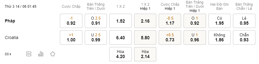 Soi kèo hiệp 1 Pháp vs Croatia: 1.17*0.5*0.73