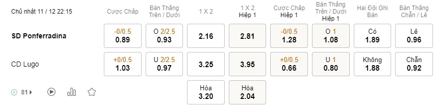 Soi kèo hiệp 1 Ponferradina vs Lugo: 1.28*0/0.5*0.68