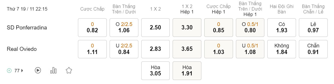 Soi kèo châu Á Ponferradina vs Oviedo: 0.82*0*1.11