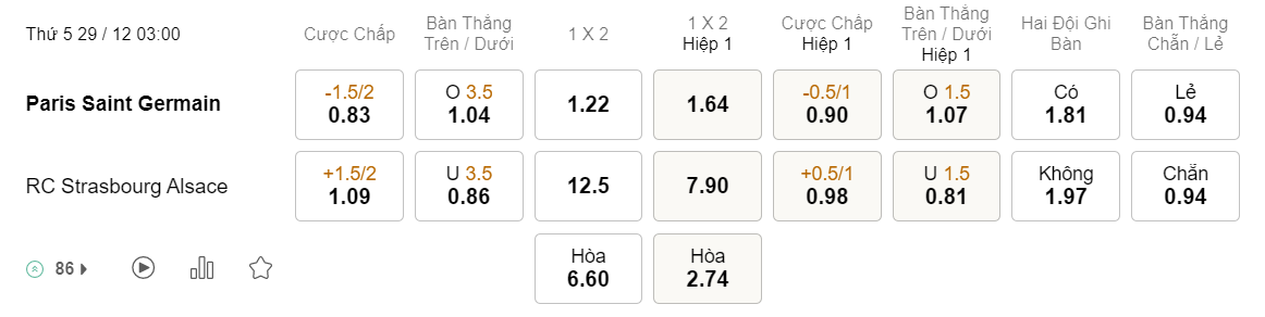 Soi kèo hiệp 1 PSG vs Strasbourg: 0.90*0.5/1*0.98