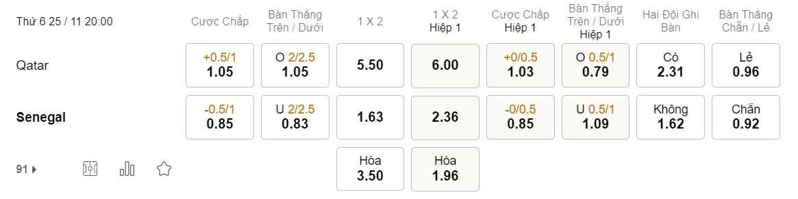 Soi kèo hiệp 1 Qatar vs Senegal: 1.03*0/0.5*0.85