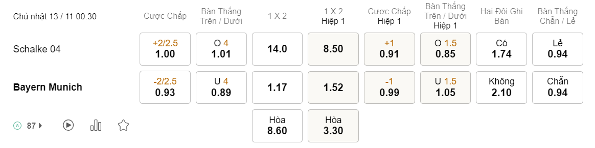 Soi kèo hiệp 1 Schalke vs Bayern: 0.91*1*0.99