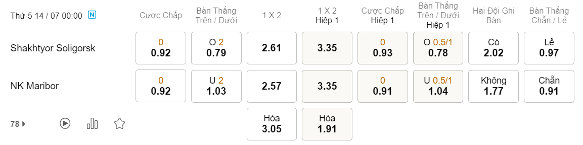 Soi kèo tài xỉu Shakhtyor vs Maribor: 0.79*2*1.03