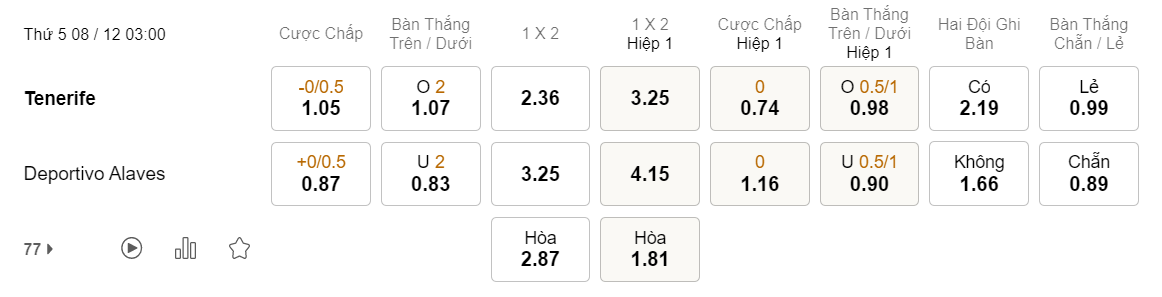 Soi kèo hiệp 1 Tenerife vs Alaves: 0.74*0*1.16