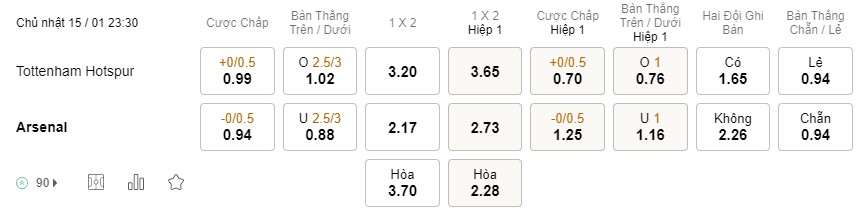 Tỉ lệ kèo Tottenham vs Arsenal