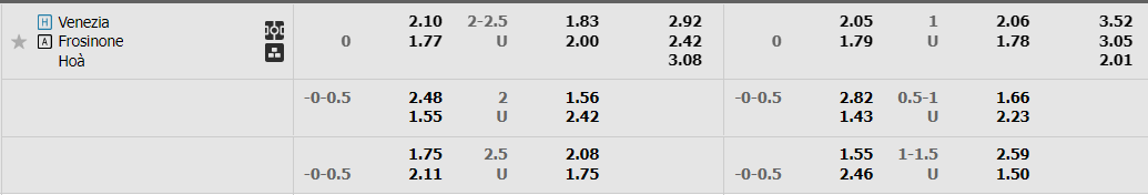 Soi kèo hiệp 1 Venezia vs Frosinone: